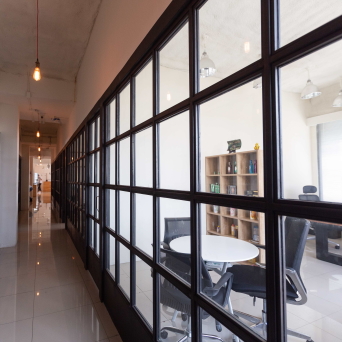 The building is a creative co-working space located in one of bangkok’s fastest growing neighborhoods.